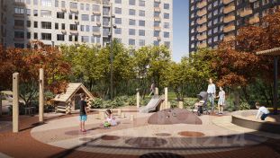 - Во дворах нет машин, шума, выхлопных газов и посторонних людей. Всё пространство разделено на зоны по интересам и возрастам. Для детей — игровые площадки из эко-материалов и мягкая защита от падений. Для взрослых — зоны отдыха, воркаут-площадки и тропинки для неспешных прогулок.