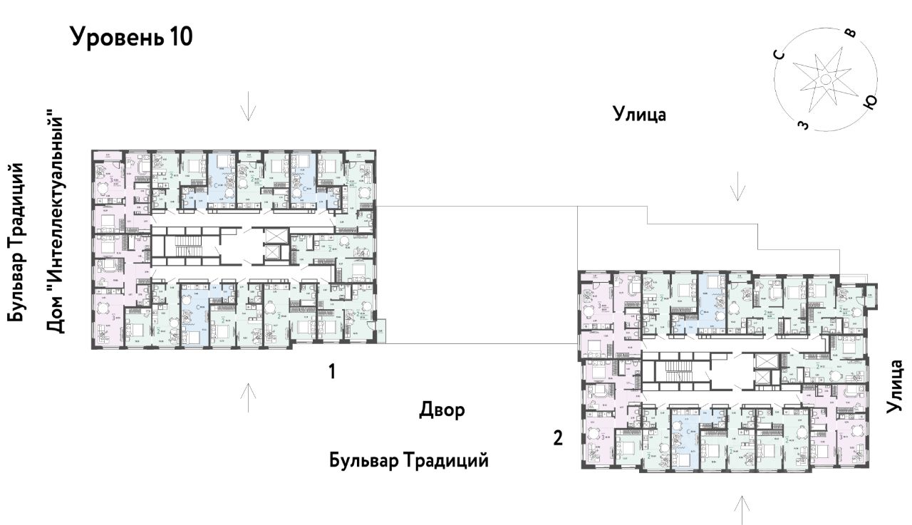 -Закрытые дворы у каждого дома для активного и спокойного отдыха