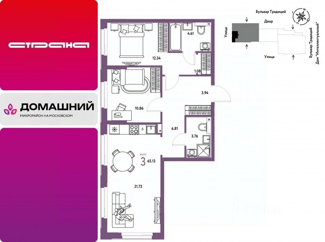Новая квартира в ЖК "Домашний" напрямую от федеральной группы компаний "Страна Девелопмент". Финансовый партнер — банк "ДОМ.РФ".