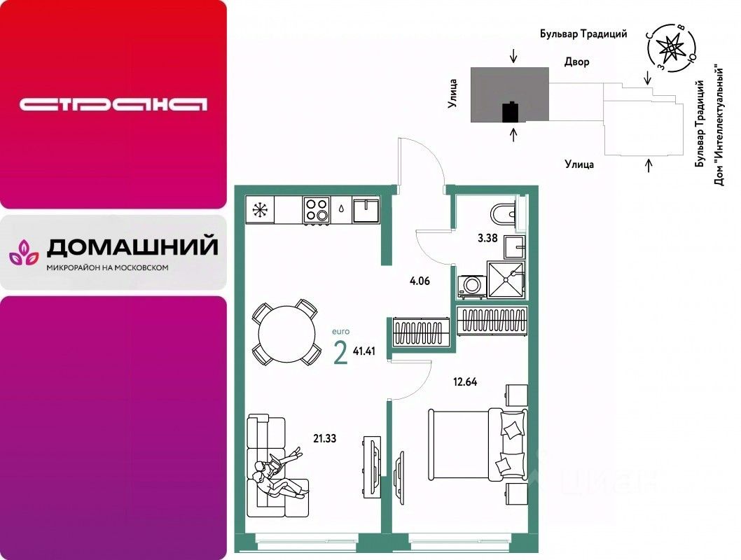 Новая квартира в ЖК "Домашний" напрямую от федеральной группы компаний "Страна Девелопмент". Финансовый партнер — банк "ДОМ.РФ".