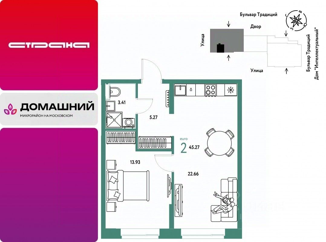 Продается 2комнатная квартира на 15 этаже от застройщика Страна Девелопмент. Площадь квартиры 45,27 кв. м. Стоимость указана без учета акций.