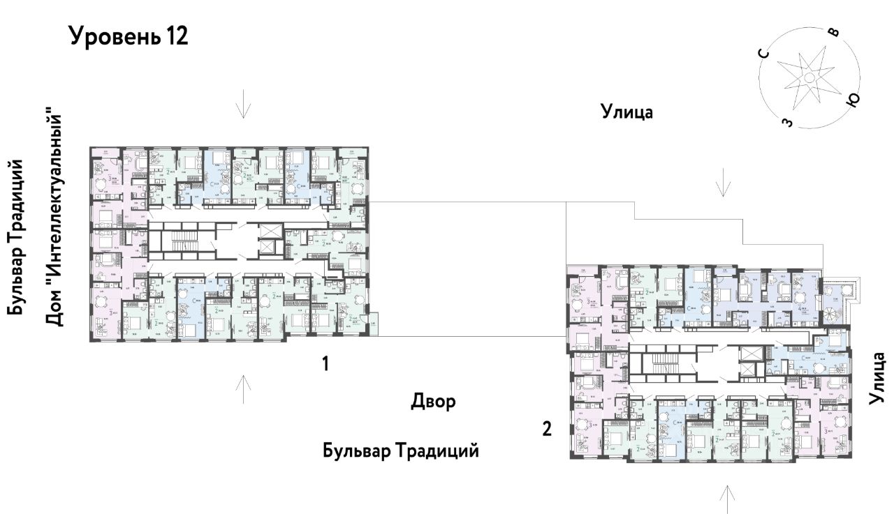 -Сквозные парадные с прозрачными входными группами, колясочными и велосипедными