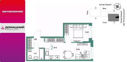 Новая квартира в ЖК "Домашний" напрямую от федеральной группы компаний "Страна Девелопмент". Финансовый партнер — банк "ДОМ.РФ".