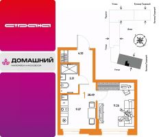 Продается 1комнатная квартира на 7 этаже от застройщика Страна Девелопмент. Площадь квартиры 28,49 кв. м.
