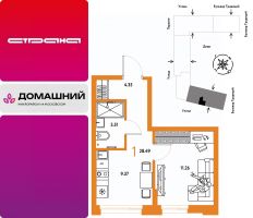 Продается 1комнатная квартира на 8 этаже от застройщика Страна Девелопмент. Площадь квартиры 28,49 кв. м.