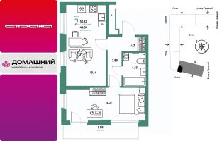 Продается 2комнатная квартира на 9 этаже от застройщика Страна Девелопмент. Площадь квартиры 50,82 кв. м.