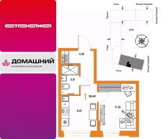 Продается 1комнатная квартира на 10 этаже от застройщика Страна Девелопмент. Площадь квартиры 28,49 кв. м.