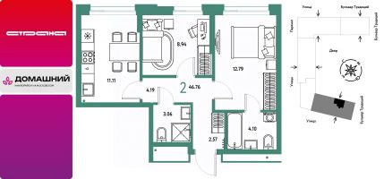 Продается 2комнатная квартира на 15 этаже от застройщика Страна Девелопмент. Площадь квартиры 46,76 кв. м.