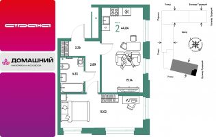 Продается 2комнатная квартира на 15 этаже от застройщика Страна Девелопмент. Площадь квартиры 44,84 кв. м.