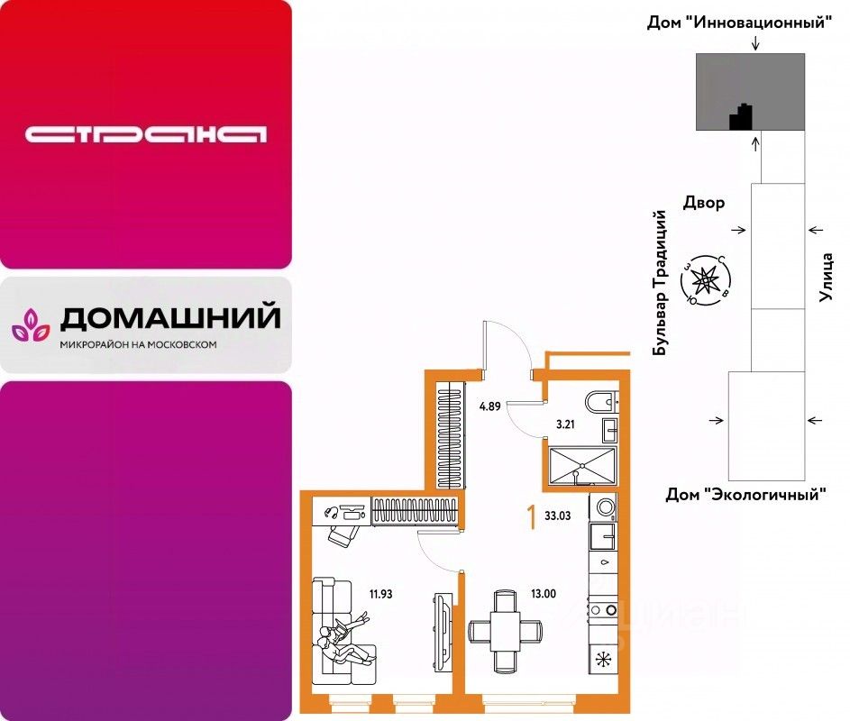 Продается 1комнатная квартира на 15 этаже от застройщика Страна Девелопмент. Площадь квартиры 33,03 кв. м.