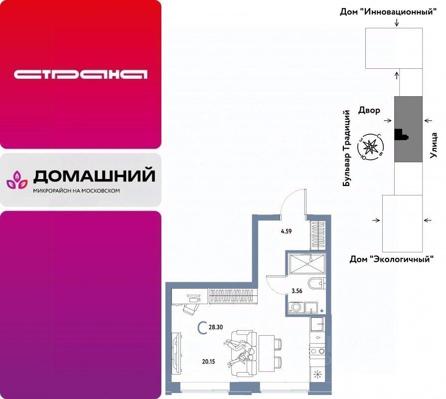 Продается 1комнатная квартира на 8 этаже от застройщика Страна Девелопмент. Площадь квартиры 28,3 кв. м.