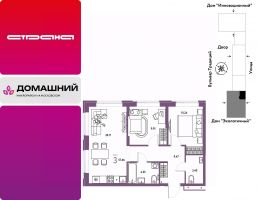 Продается 3комнатная квартира на 4 этаже от застройщика Страна Девелопмент. Площадь квартиры 57,66 кв. м.