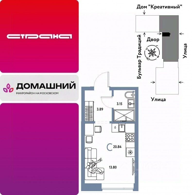 Продается 1комнатная квартира на 2 этаже от застройщика Страна Девелопмент. Площадь квартиры 20,84 кв. м.