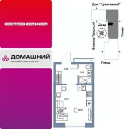 Новая квартира в ЖК "Домашний" напрямую от федеральной группы компаний "Страна Девелопмент". Финансовый партнер — банк "ДОМ.РФ".