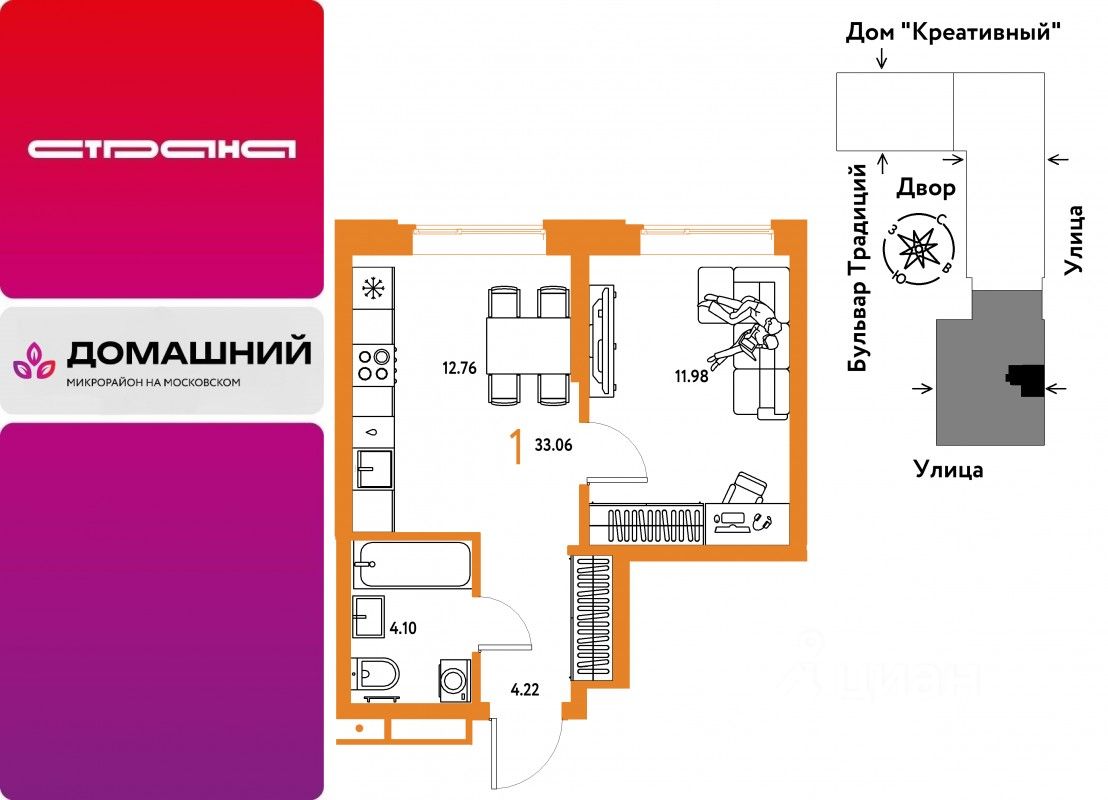 Новая квартира в ЖК "Домашний" напрямую от федеральной группы компаний "Страна Девелопмент". Финансовый партнер — банк "ДОМ.РФ".