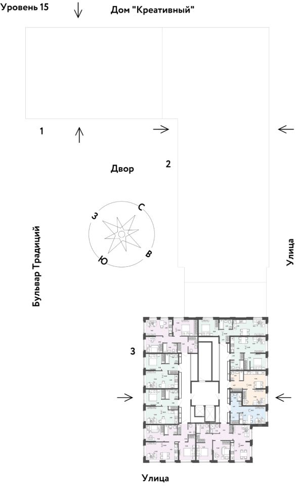 -Сквозные парадные с прозрачными входными группами, колясочными и велосипедными