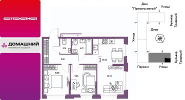 Продается 3комнатная квартира на 5 этаже от застройщика Страна Девелопмент. Площадь квартиры 56,03 кв. м.