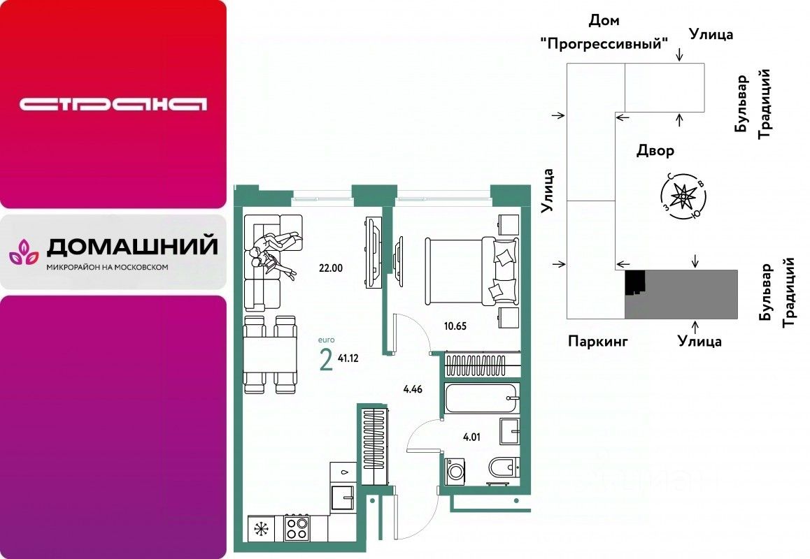 Продается 2комнатная квартира на 5 этаже от застройщика Страна Девелопмент. Площадь квартиры 41,12 кв. м.