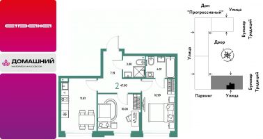 Продается 2комнатная квартира на 6 этаже от застройщика Страна Девелопмент. Площадь квартиры 47 кв. м.
