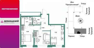 Продается 2комнатная квартира на 6 этаже от застройщика Страна Девелопмент. Площадь квартиры 47 кв. м.