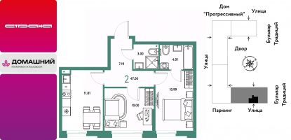 Продается 2комнатная квартира на 7 этаже от застройщика Страна Девелопмент. Площадь квартиры 47 кв. м.