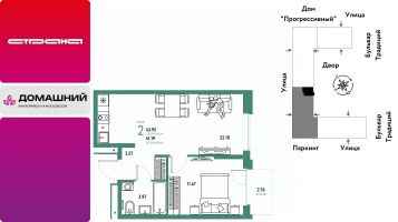 Продается 2комнатная квартира на 9 этаже от застройщика Страна Девелопмент. Площадь квартиры 43,95 кв. м.