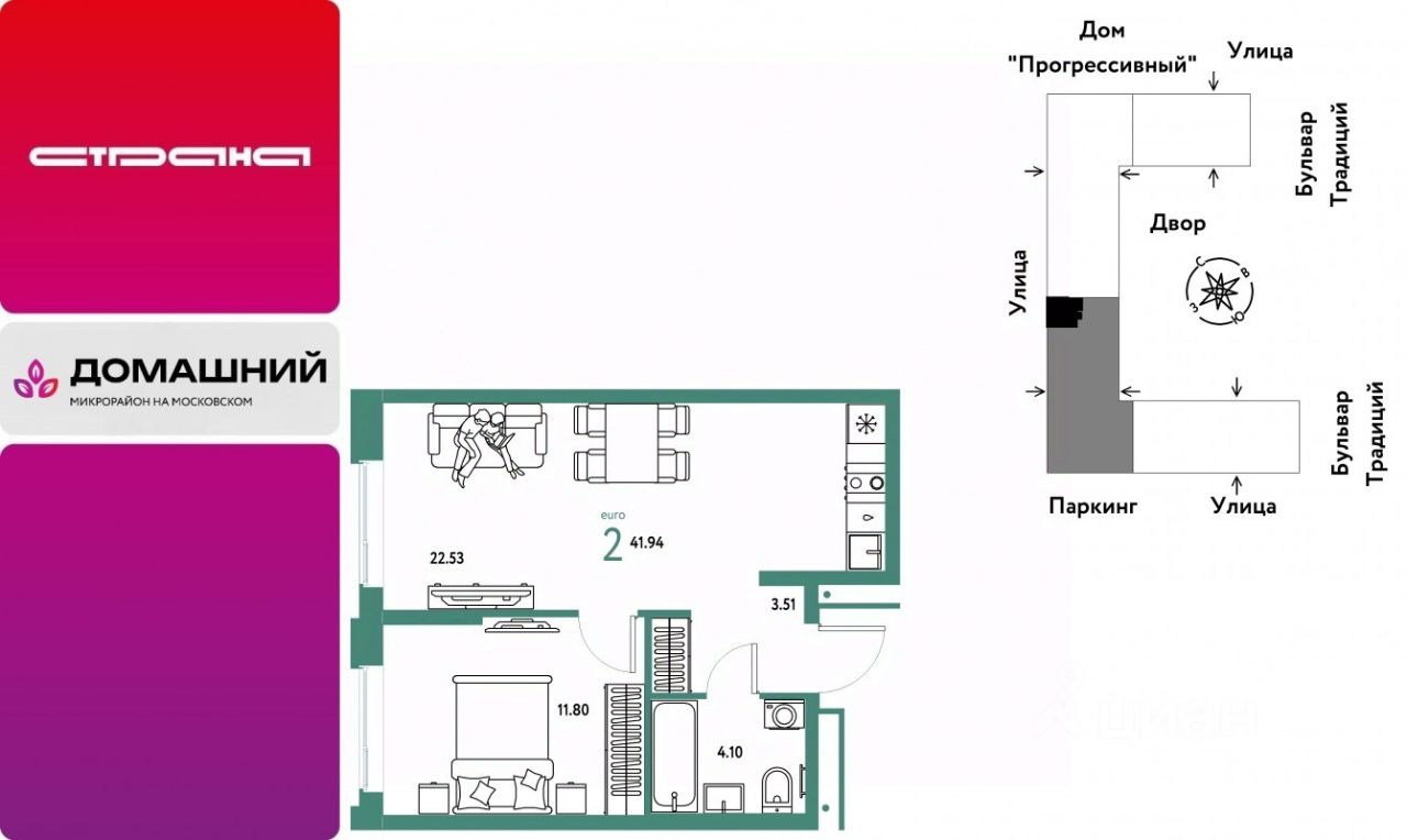 Продается 2комнатная квартира на 13 этаже от застройщика Страна Девелопмент. Площадь квартиры 41,94 кв. м.
