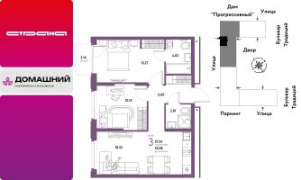 Продается 3комнатная квартира на 7 этаже от застройщика Страна Девелопмент. Площадь квартиры 57,54 кв. м.