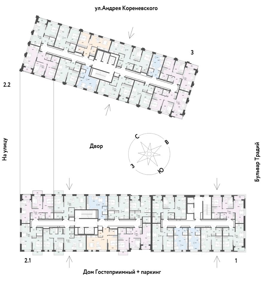 Микрорайон "Домашний" — это 6 очередей строительства, 24 дома переменной этажности. Каждый дом уникальный.
