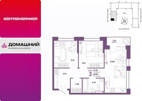 Продается 3комнатная квартира на 15 этаже от застройщика Страна Девелопмент. Площадь квартиры 51,91 кв. м.
