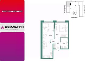 Продается 2комнатная квартира на 5 этаже от застройщика Страна Девелопмент. Площадь квартиры 44,64 кв. м.
