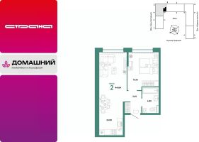 Продается 2комнатная квартира на 6 этаже от застройщика Страна Девелопмент. Площадь квартиры 44,64 кв. м.