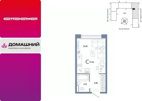 Продается 1комнатная квартира на 7 этаже от застройщика Страна Девелопмент. Площадь квартиры 21,44 кв. м.
