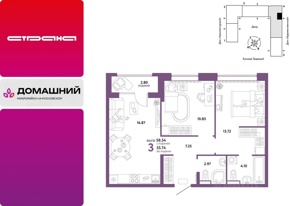 Новая квартира в ЖК "Домашний" напрямую от федеральной группы компаний "Страна Девелопмент". Финансовый партнер — банк "ДОМ.РФ".
