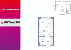 Продается 1комнатная квартира на 2 этаже от застройщика Страна Девелопмент. Площадь квартиры 21,48 кв. м.