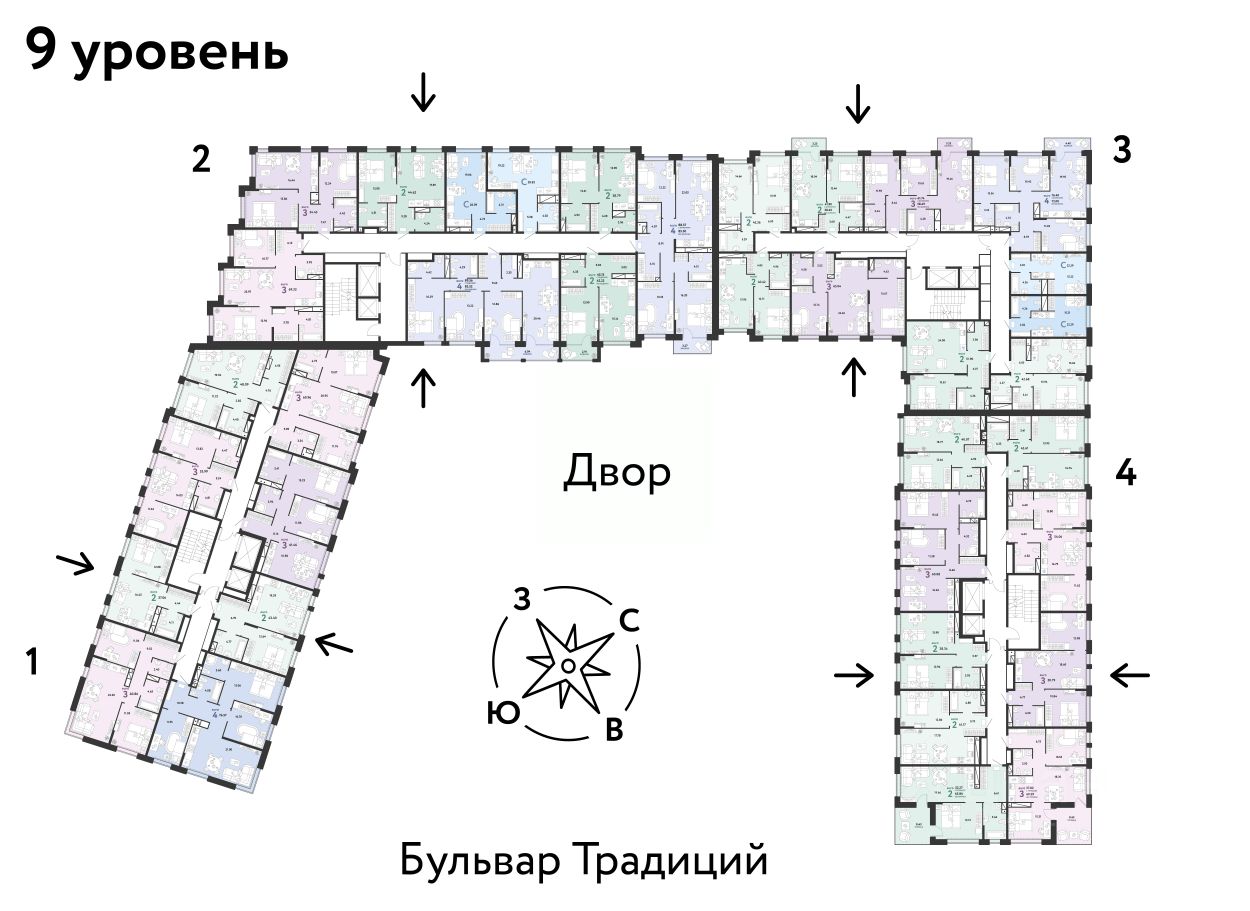Внутри микрорайона появится огромный пешеходный бульвар — бульвар Традиций. Центром притяжения станут открытые пространства для отдыха жителей и гостей микрорайона, которые легко меняются под сезонные сценарии отдыха: новогодняя елка, ярмарки, кинопоказы и т.д.