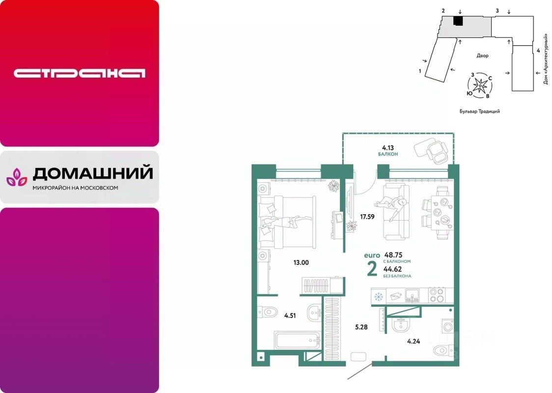 Продается 2комнатная квартира на 7 этаже от застройщика Страна Девелопмент. Площадь квартиры 48,75 кв. м. Стоимость указана без учета акций.