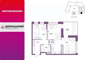 Продается 3комнатная квартира на 9 этаже от застройщика Страна Девелопмент. Площадь квартиры 57,82 кв. м. Стоимость указана без учета акций.