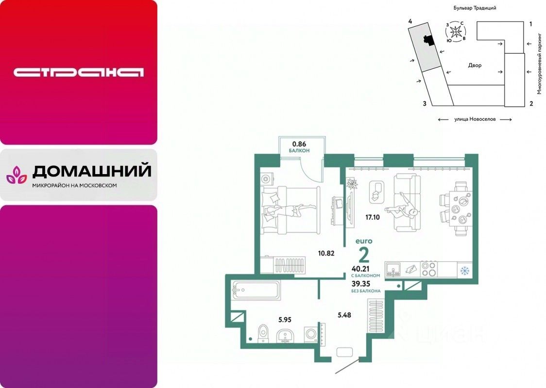 Продается 2комнатная квартира на 9 этаже от застройщика Страна Девелопмент. Площадь квартиры 40,21 кв. м.
