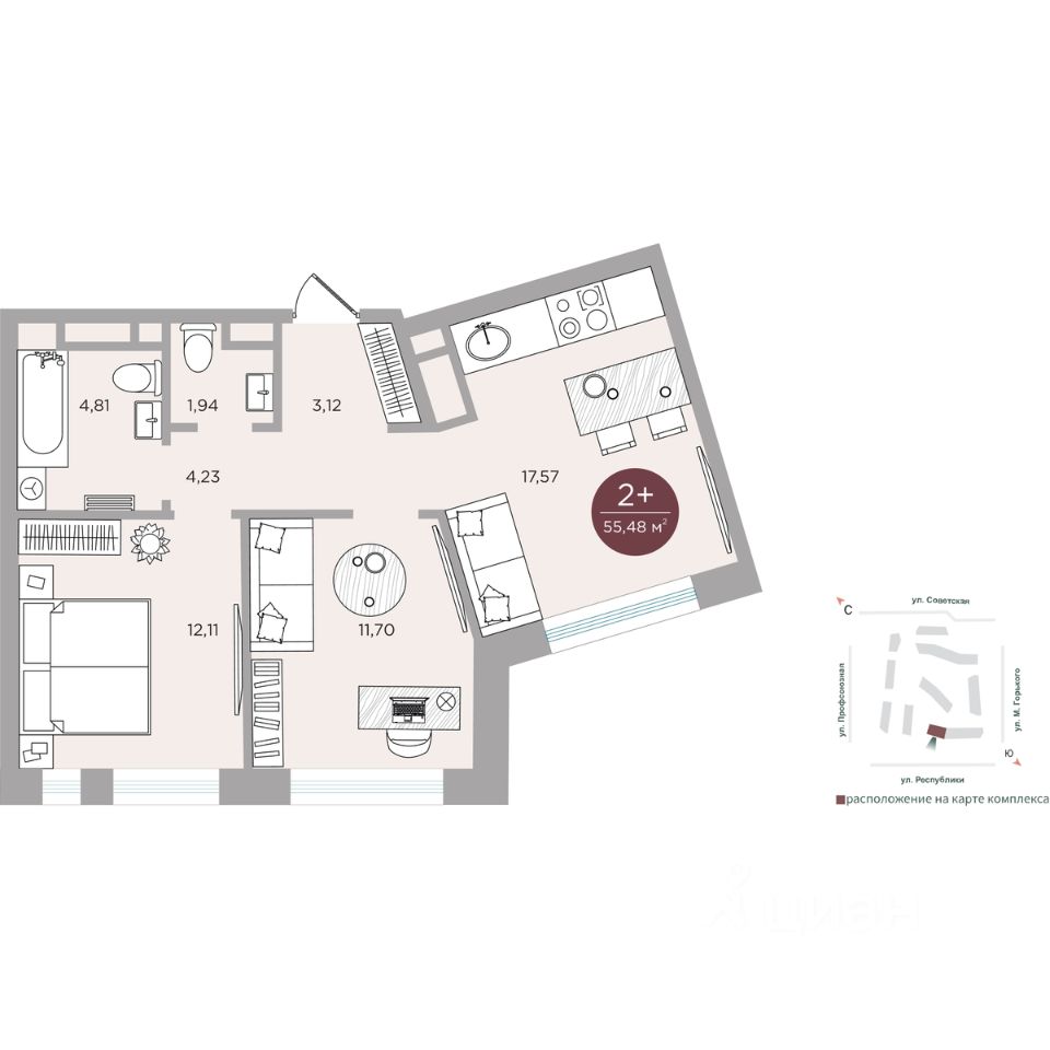 Территория квартала - это квадрат улиц Профсоюзная-Республики-Советская-М.Горького. Застройщиком спроектированы квартиры от студий до четырехкомнатных, общей площадью от 29.6 до 146.3 кв. м. Дома сдаются в предчистовой отделке.