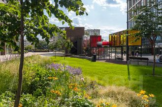 Благоустройство прилегающей территории включает в себя организацию детских игровых и спортивных площадок, гостевой автостоянки, а также озеленение. Предусмотрен подземный паркинг. Первые этажи займут коммерческие помещения. В шаговой доступности находятся школы, детские сады, медицинские учреждения, магазины, торговый центр и остановки общественного транспорта.