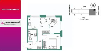 Новая квартира в ЖК "Домашний" напрямую от федеральной группы компаний "Страна Девелопмент". Финансовый партнер — банк "ДОМ.РФ".