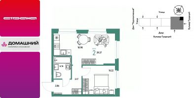 Новая квартира в ЖК "Домашний" напрямую от федеральной группы компаний "Страна Девелопмент". Финансовый партнер — банк "ДОМ.РФ".