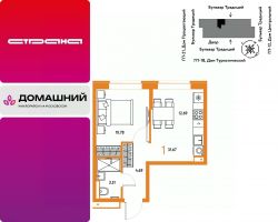 Новая квартира в ЖК "Домашний" напрямую от федеральной группы компаний "Страна Девелопмент". Финансовый партнер — банк "ДОМ.РФ".