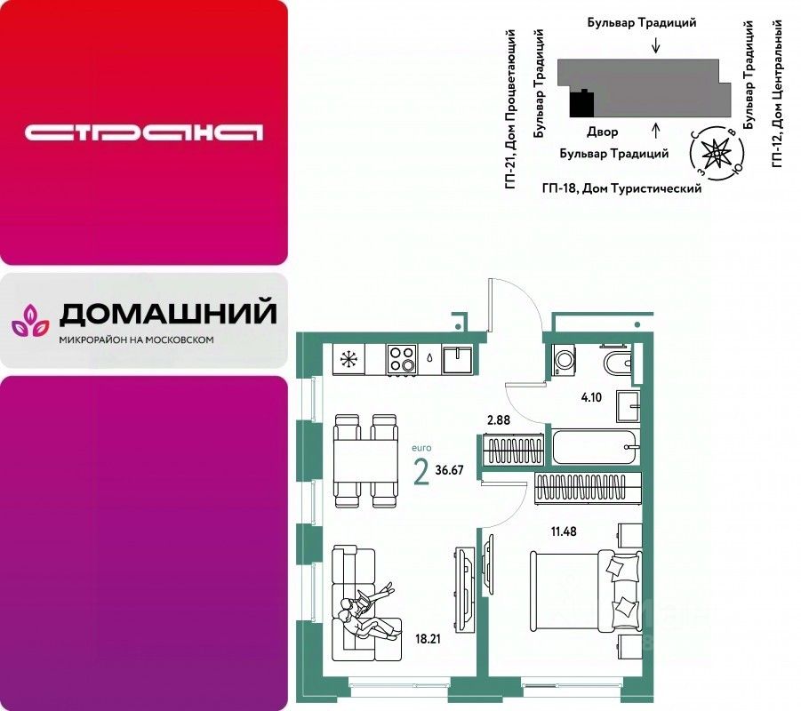 Новая квартира в ЖК "Домашний" напрямую от федеральной группы компаний "Страна Девелопмент". Финансовый партнер — банк "ДОМ.РФ".
