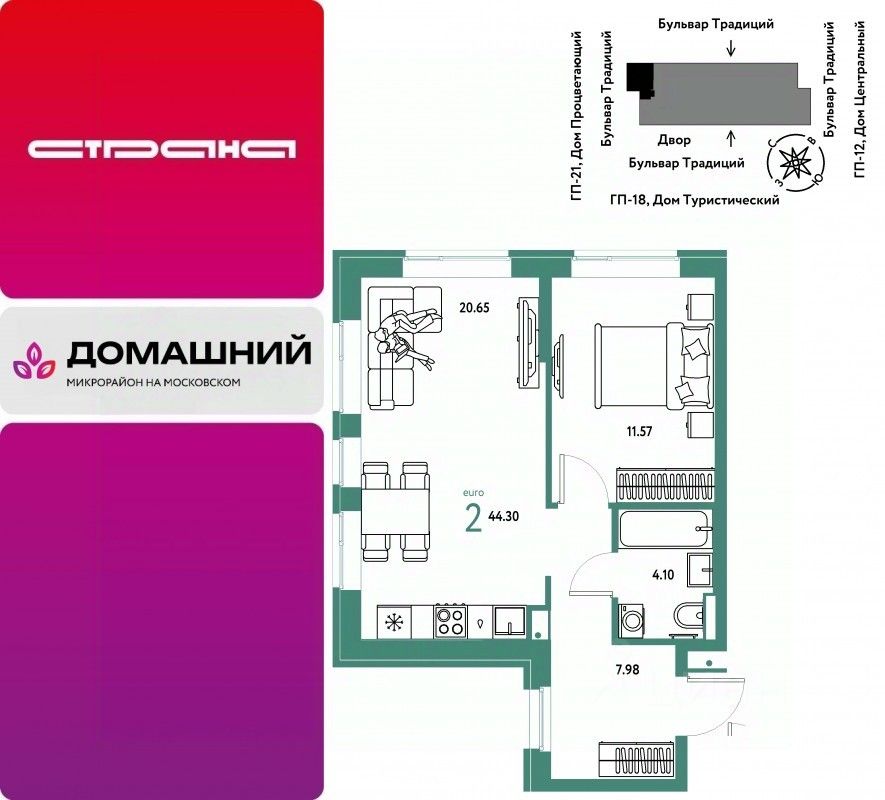 Новая квартира в ЖК "Домашний" напрямую от федеральной группы компаний "Страна Девелопмент". Финансовый партнер — банк "ДОМ.РФ".
