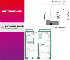Продается 2комнатная квартира на 9 этаже от застройщика Страна Девелопмент. Площадь квартиры 37,43 кв. м.