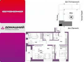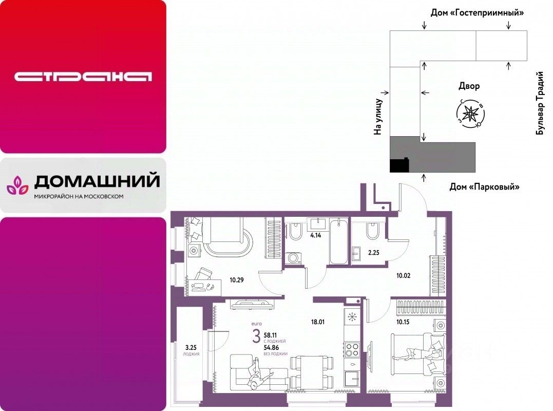 Продается 3комнатная квартира на 9 этаже от застройщика Страна Девелопмент. Площадь квартиры 58,11 кв. м.