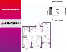 Продается 3комнатная квартира на 9 этаже от застройщика Страна Девелопмент. Площадь квартиры 63,04 кв. м.