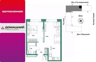 Продается 2комнатная квартира на 3 этаже от застройщика Страна Девелопмент. Площадь квартиры 43,31 кв. м.